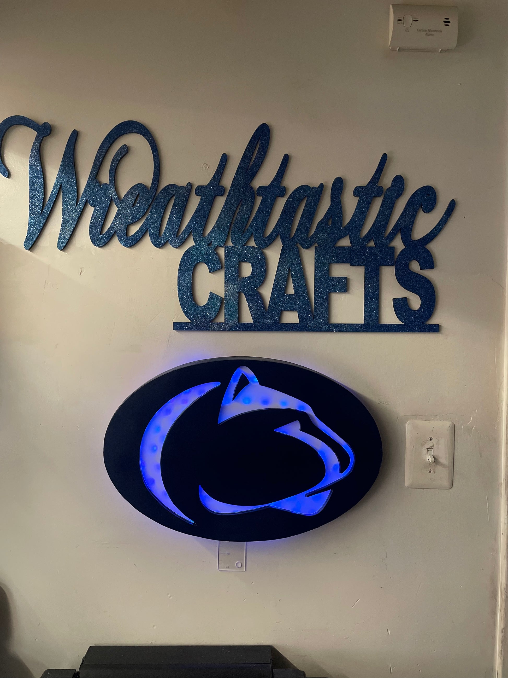 This Penn State 3D Wood Sign is the perfect addition to any fan's collection. Made from high-quality birch wood and acrylic, it showcases the iconic Penn State logo. Measuring 19x13 inches and with a depth of 2.5 inches, it is sure to stand out. The integrated battery-powered lights add an extra touch of team spirit. The hardware to mount it is included, and it is shipped within 5-6 days of purchase. Custom orders are non-refundable.
