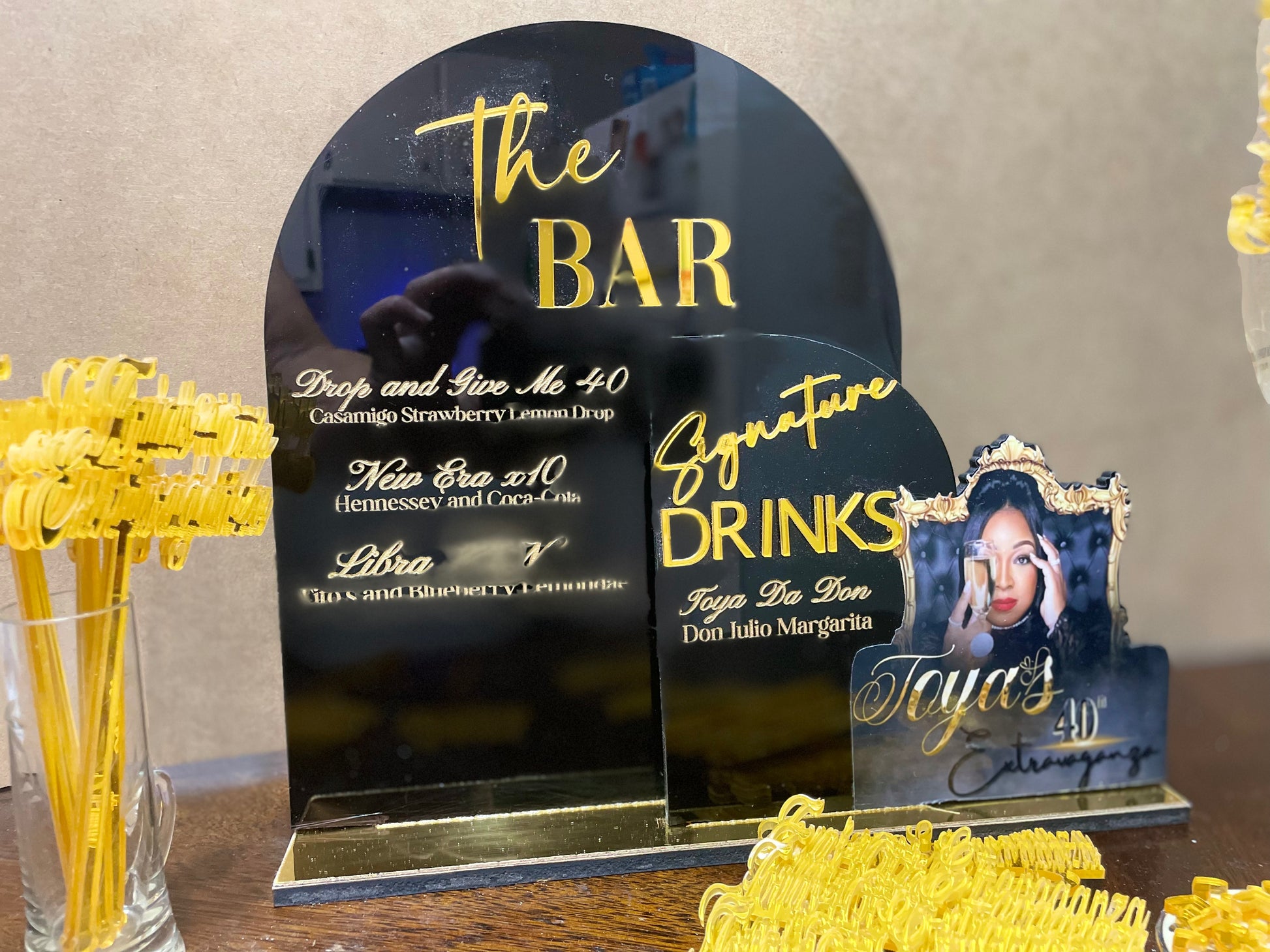 Bring your bar to life with a handcrafted acrylic sign made just for you. Choose a clean, classic look with bold lettering—or add a favorite picture to make it truly one-of-a-kind. Perfect for home bars, man caves, or special events, each sign is custom-cut, polished, and designed to stand out day or night.